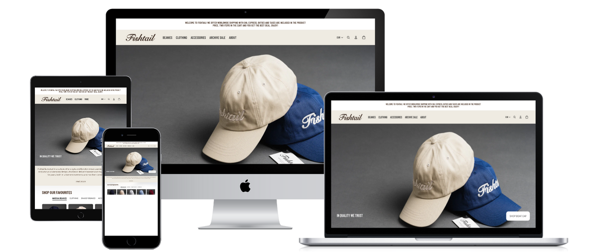 Fishtail is a premium lifestyle brand rooted in Scandinavian design, specialising in high-quality beanies and apparel. The Yoshko team was responsible for rebuilding the Shopify storefront and optimising the entire product catalogue to create a clean, scalable, and conversion-focused ecommerce experience.